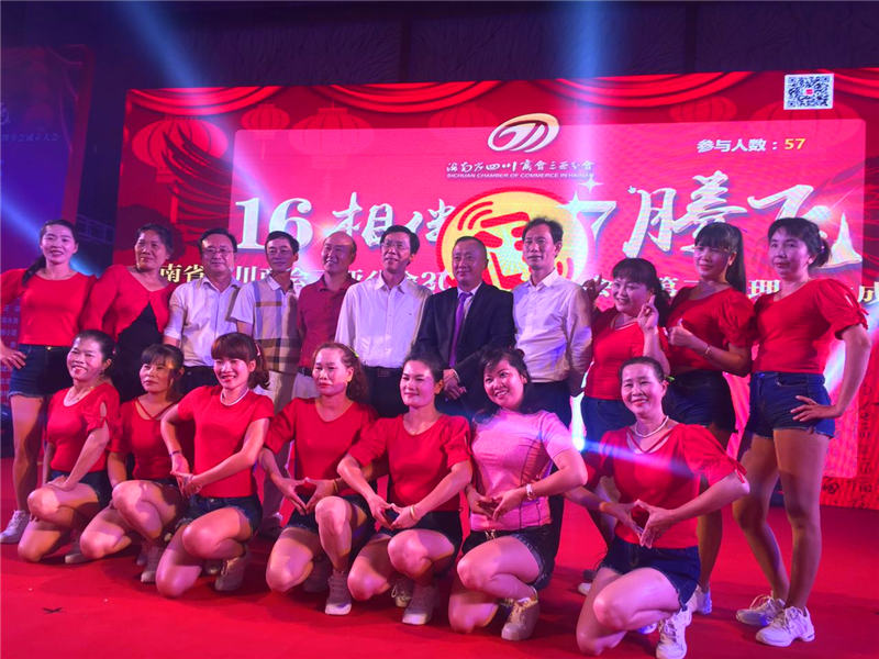 公司領(lǐng)導(dǎo)與年會演出員工合影
