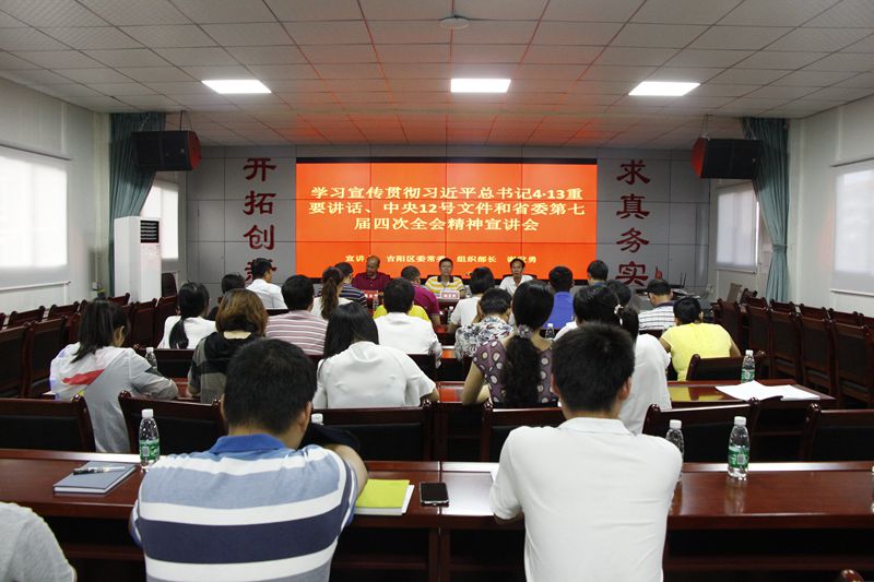 根據(jù)吉陽區(qū)委統(tǒng)一部署,學(xué)習(xí)貫徹習(xí)近平總書記“4·13”重要講話、中央12號文件和省委第七屆四次全會精神宣講會在明佳集團三樓會議室舉行。吉陽區(qū)委常委、組織部長謝發(fā)勇作宣講報告。集團黨支部書記、董事長陳明主持宣講會。