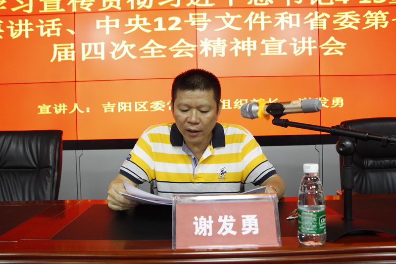 吉陽區(qū)委組織部副部長彭云,區(qū)委組織部有關(guān)負責(zé)同志,集團公司總裁陳云,集團公司全體黨員、入黨積極分子30余人聆聽宣講會。