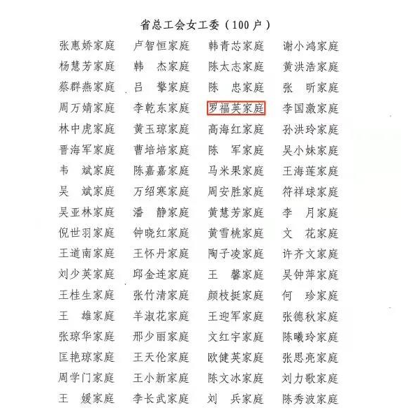明佳集團(tuán)吉陽區(qū)域環(huán)衛(wèi)四隊隊長羅福英家庭于2021年10月22日被海南省婦聯(lián)推選為2021年海南省“綠色家庭”示范戶。