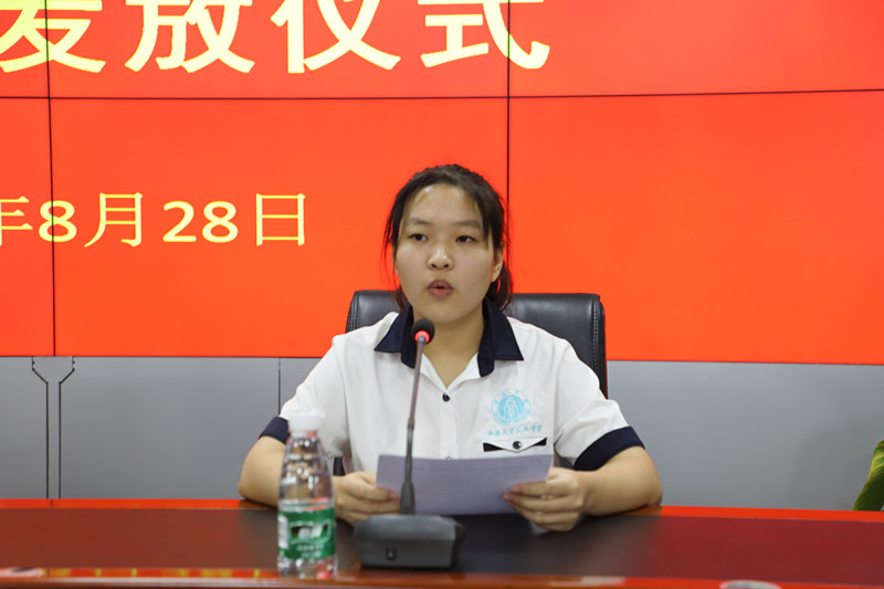 (工會主席高斐斐向?qū)W子發(fā)放助學金)