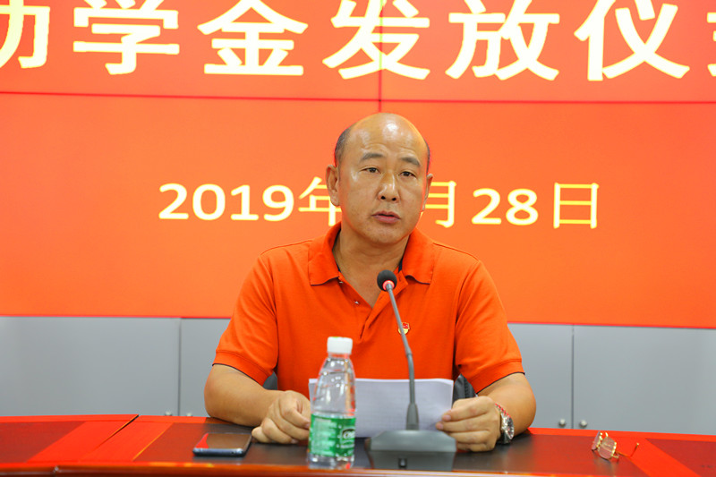 (生產(chǎn)部經(jīng)理楊洪向?qū)W生家長發(fā)放助學金)