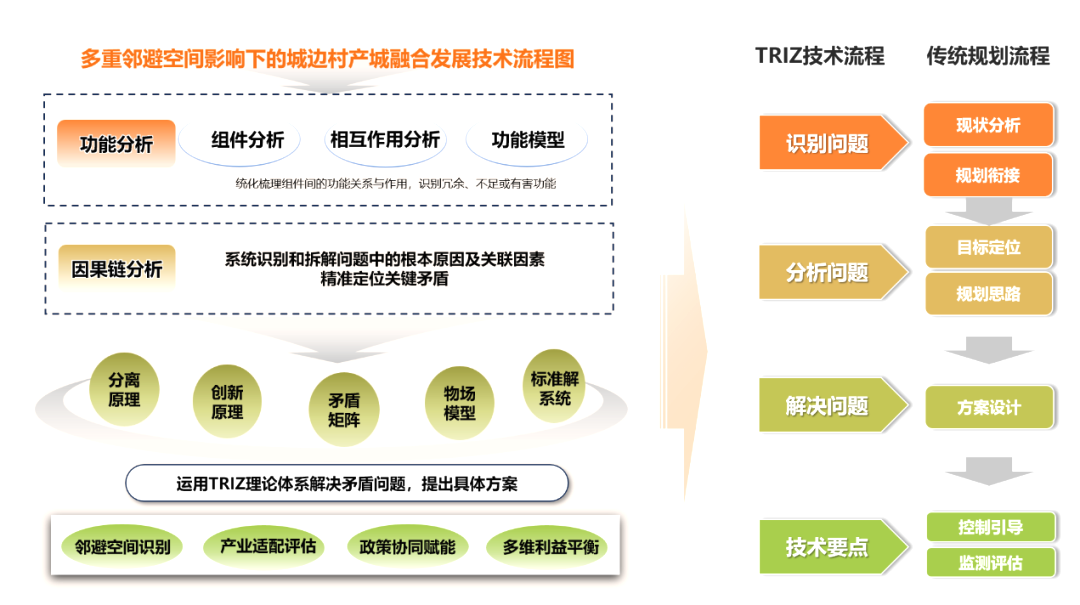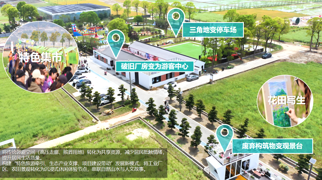 “基于TRIZ創(chuàng)新理論的一種多重鄰避空間影響下的城邊村產(chǎn)城融合發(fā)展規(guī)劃技術”項目基于寧波北侖新碶街道村莊規(guī)劃編制實踐,對城邊村產(chǎn)城融合發(fā)展的深層矛盾進行科學拆解,精準識別出“空間排他、物理割裂、功能受限、發(fā)展制約”四大關鍵矛盾。項目提出的“化鄰避為鄰利”技術方案,有效應對土地供需不平衡、資源保護利用不協(xié)調(diào)等問題,提出“破解約束、產(chǎn)業(yè)升級、植入IP”的產(chǎn)業(yè)發(fā)展路徑,成功解決多重鄰避空間制約下的規(guī)劃發(fā)展難題,為新碶街道量身擘畫了“碶彩稻田”鄉(xiāng)村振興推進示范區(qū)和“稻田+”都市田園鄉(xiāng)村示范區(qū)的規(guī)劃藍圖。
